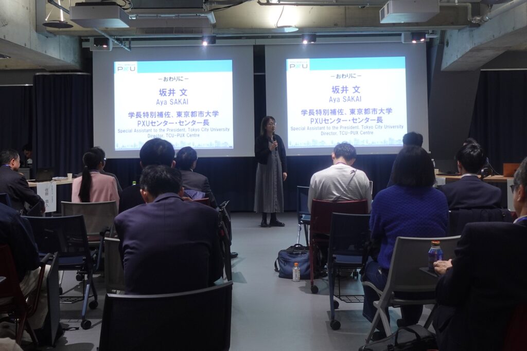 クロージングでは、坂井 文 渋谷PXUセンター長から閉会の挨拶があり、イノベーションを生み出す共創の場である渋谷PXUにおいて、さまざまな方々に交流していただけるよう、今後も公開講座やイベント、リカレントプログラム等を展開していくと述べました。