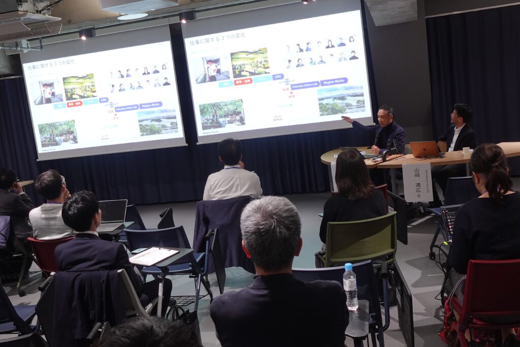 続いて、リージョンワークス合同会社代表社員の後藤 太一 氏が「都市と産業をつなぐ「場」の経営-チームによるエリアのデザインとマネジメント」とのテーマで話題提供を行いました。後藤 氏は、デヴェロッパーの開発戦略に依存しない、持続的なまちづくりの在り方を考える上では、普段は出会うことのないような人びとがかかわり合い、継続的に活動することによってつくり上げられていく「場」を経営し、まちづくりをデザインしていくことが肝要であると述べました。